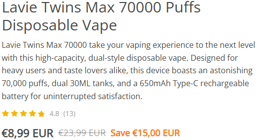 🟣 Lavie Twins Max 70000 Puffs Disposable Vape