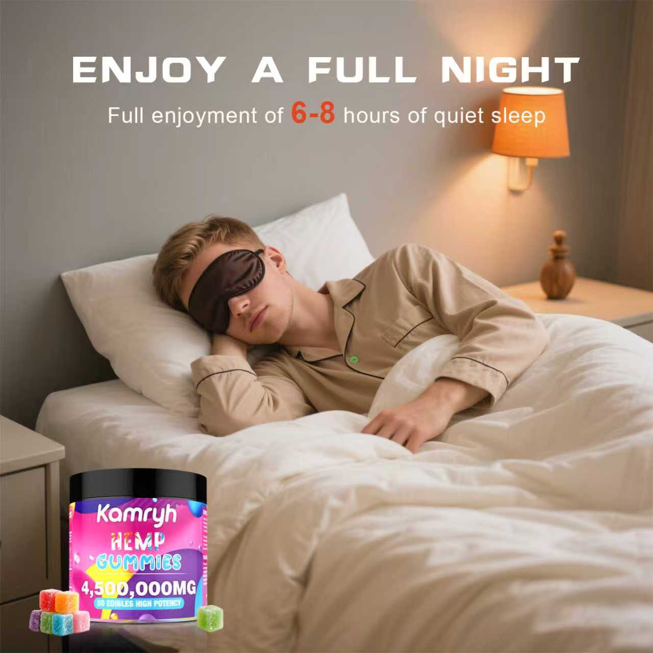 Sound, Restorative Slumber - Enjoy 6 to 8 hours of rest at a time. Hemp oil infused gummies to help you fall asleep and stay asleep, say goodbye to restless nights. Wake up feeling refreshed, add a moment of focus and energy in the day time; Peace, calm and bedtime support in the night.
