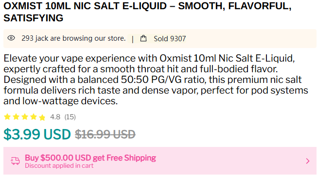 Elevate your vape experience with Oxmist 10ml Nic Salt E-Liquid, expertly crafted for a smooth throat hit and full-bodied flavor. Designed with a balanced 50:50 PG/VG ratio, this premium nic salt formula delivers rich taste and dense vapor, perfect for pod systems and low-wattage devices.