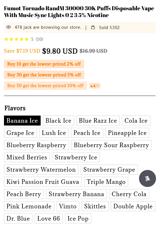 For those looking to extend their vaping pleasure, the Fumot Tornado RandM 30000 offers an astounding 30,000 puffs—a feature that sets it apart from many competitors. This high-capacity performance means users can enjoy extended sessions without needing frequent replacements or refills, making it a practical choice for both casual and heavy vapers.