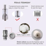 - Atomizer connector: 510 thread and 2ml atomizer capacity empty no liquid, no nicotine.